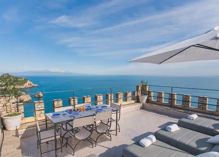Deze 4-slaapkamer Torre Pirandello 6, Emma Villas Taormina bevindt zich op 6 minuten loopafstand van Riserva naturale orientata Isola Bella en biedt een terras met uitzicht over de zee. De 4-badkamer villa bevindt zich in de onmiddellijke nabijheid van Isola Bella en nodigt gasten uit om te ontspannen in een solarium en een bubbelbad.